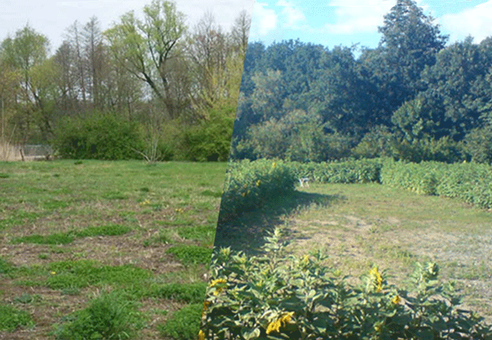 Vorher/Nachher Collage - Gemeinschaftsgarten Elisabeth-Wolf-Straße