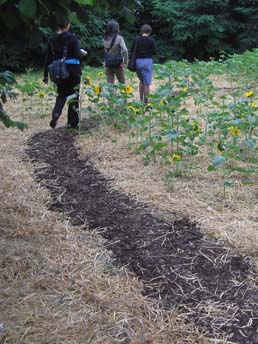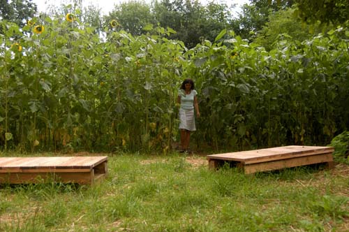 „Wenn man an der Strasse steht, vermutet man gar nicht, dass es hier hinten so schön angenehm ist.“ Zwei Seniorinnen „Das ist ein schöner Garten. Er ist naturbelassen und nicht so modern und exakt.“ Passantin mit Hund „Es ist ungewöhnlich, sich hier durch die Sonnenblumen zu bewegen. Sie sind so hoch, dass hat fast was tropisches, dschungelartiges.“ Leiterin der Jugendhilfe |